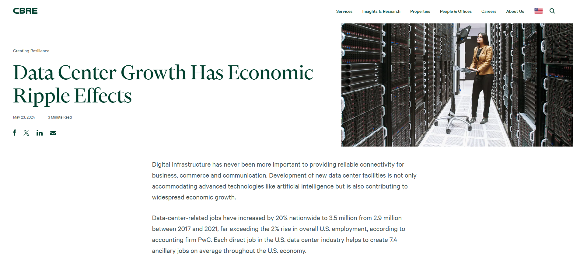For every 1 direct data center job, 6 more are created in the broader economy — from construction and electrical work to hospitality, maintenance, and local services that keep operations running smoothly.