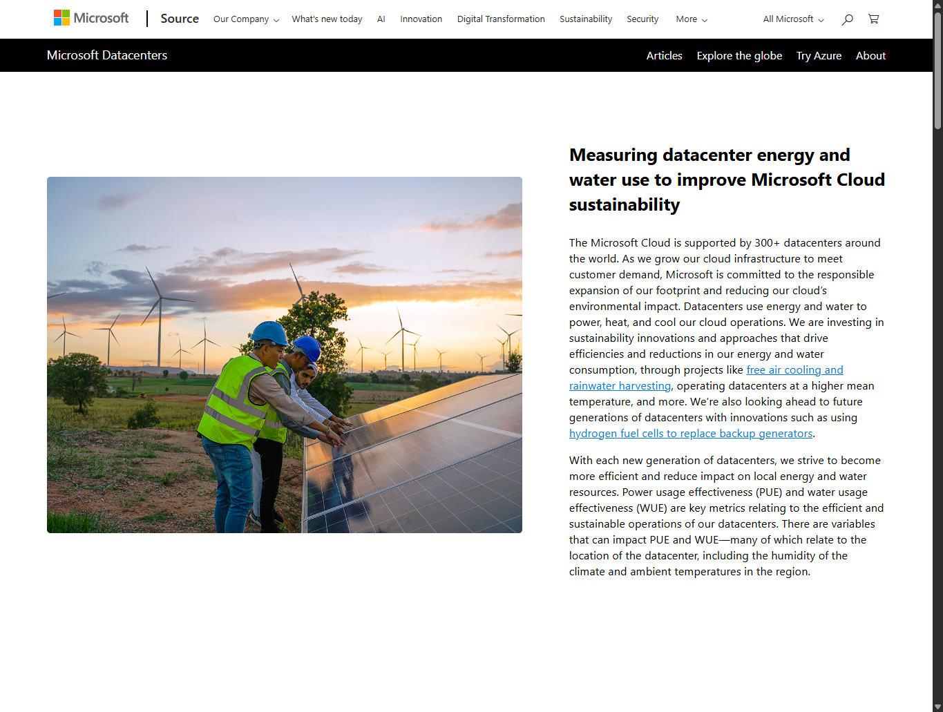 Measuring datacenter energy and water use to improve Microsoft Cloud sustainability
